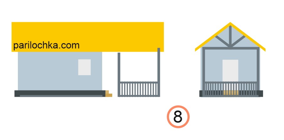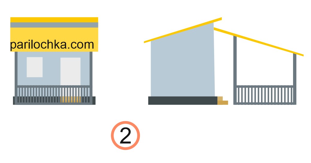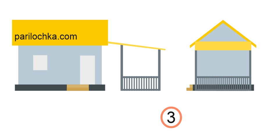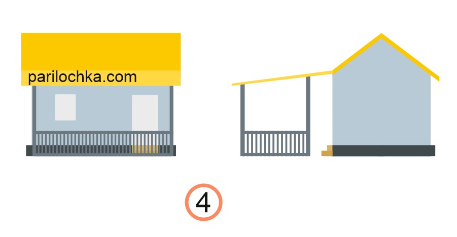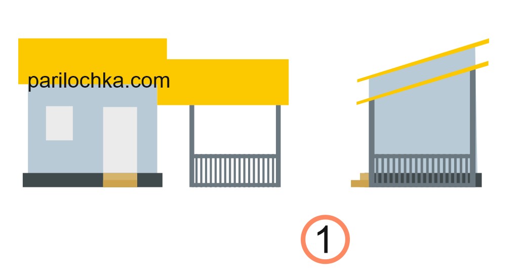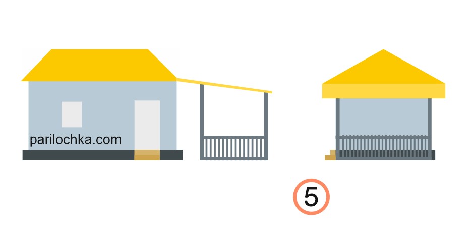 Предупредим только, что схемы пристроек к бане в виде беседок даны в очень упрощенном виде. Какая именно у вас будет беседка — мы не знаем, а здесь дадим принципы.