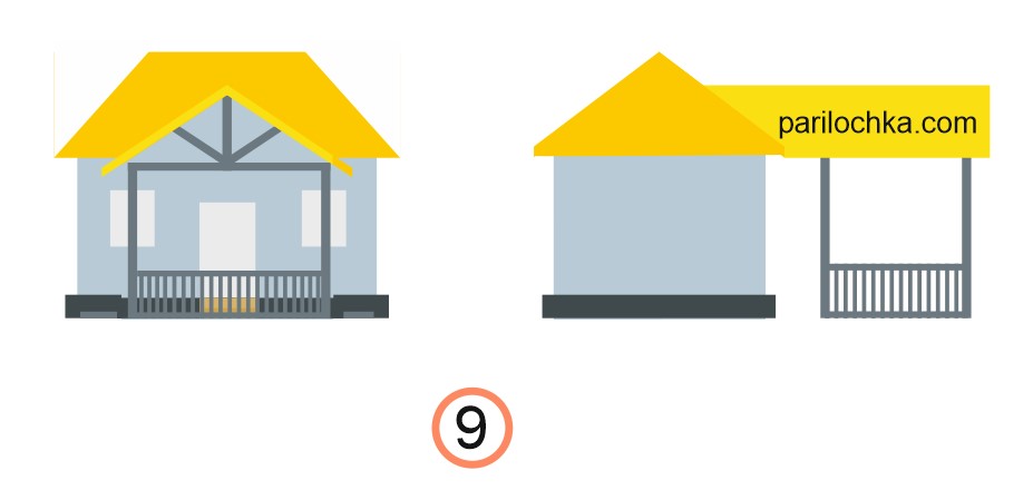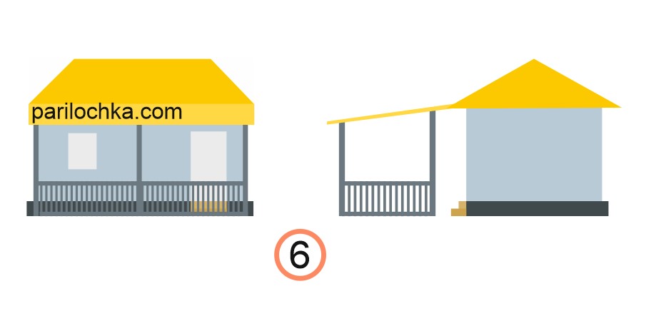 Схема для бани с двускатной крышей — беседка с вальмовой крышей, возведенная со стороны фронтона