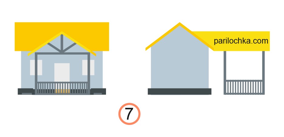 Самый простой вариант сделать веранду – это пристроить ее к дому. Преимуществом такого расположения является то, что для ее строительства понадобится меньше материалов, т. к. одна из стен у нее уже будет – это часть бани.