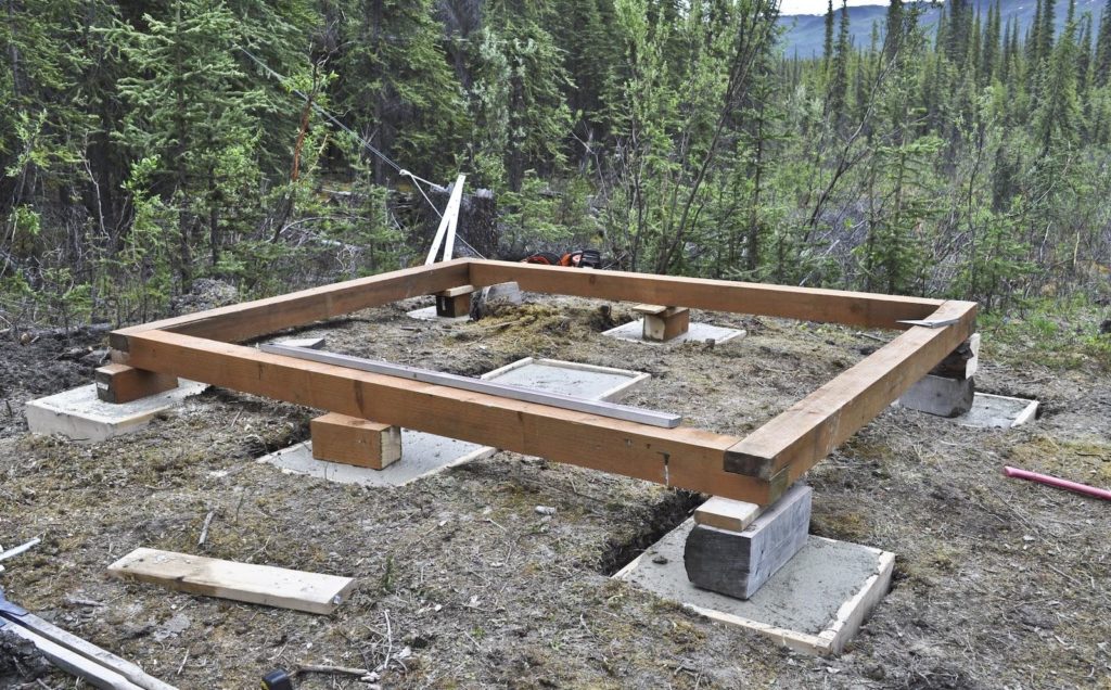 - Столбчатый вариант выполняется путем изготовления свай, которые закапываются в землю на глубину ниже, чем промерзает грунт. Установка свай происходит по углам строения и через каждые 2 м по периметру. Этот вариант дешевле.