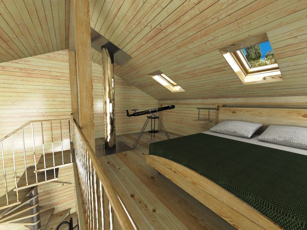 Так как площадь строения достаточно большая, то мансарду также можно разделить на две комнаты. Это будет очень целесообразно, если в доме часто бывают гости. Одну комнату можно использовать в качестве спальной, а вторую – в качестве гостевой.