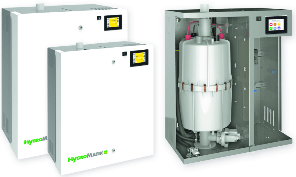 Еще одним представителем немецкого рынка оборудования для хамамов являются парогенераторы марки HYGROMATIK. Преимуществом этого бренда считается производство парогенераторов разной мощности. Кроме того, в некоторых моделях нагрев воды осуществляется при помощи электродов. Такая система нагрева значительно увеличивает срок службы парогенератора и значительно выделяет HYGROMATIK на рынке оборудования для хамамов. Эта особенность считается явным преимуществом и выгодно выделяет бренд среди конкурентов.