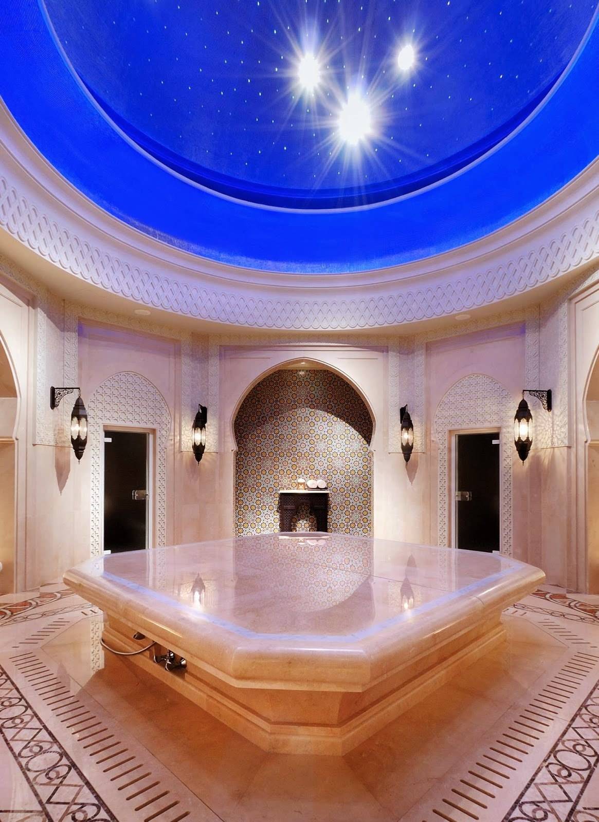 Обстановка — всё «по-восточному». Дерева нет, есть мраморные лежаки и большие комнаты для мытья. Температура внутри не выше 50°, а вот влажность — под 100%. В обязательном порядке должны быть бассейны. В общем, красиво, богато, экзотично…, но для души нашего человека, как-то непривычно.