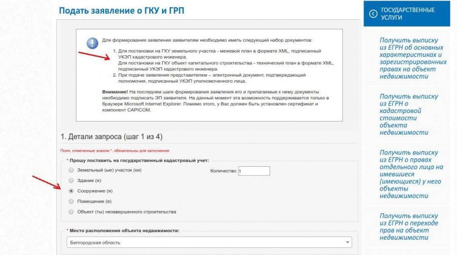 - Подача заявления онлайн-сайт Росреестра – выбор закладки «кадастровый учет»