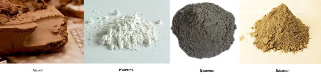 Глиняные используются чаще всего. Это объясняется большими залежами глины, как следствие, низкой ценой. При этом, глина обладает хорошими огнеупорными свойствами. Растворы из глины используют для кладки и для замазки.