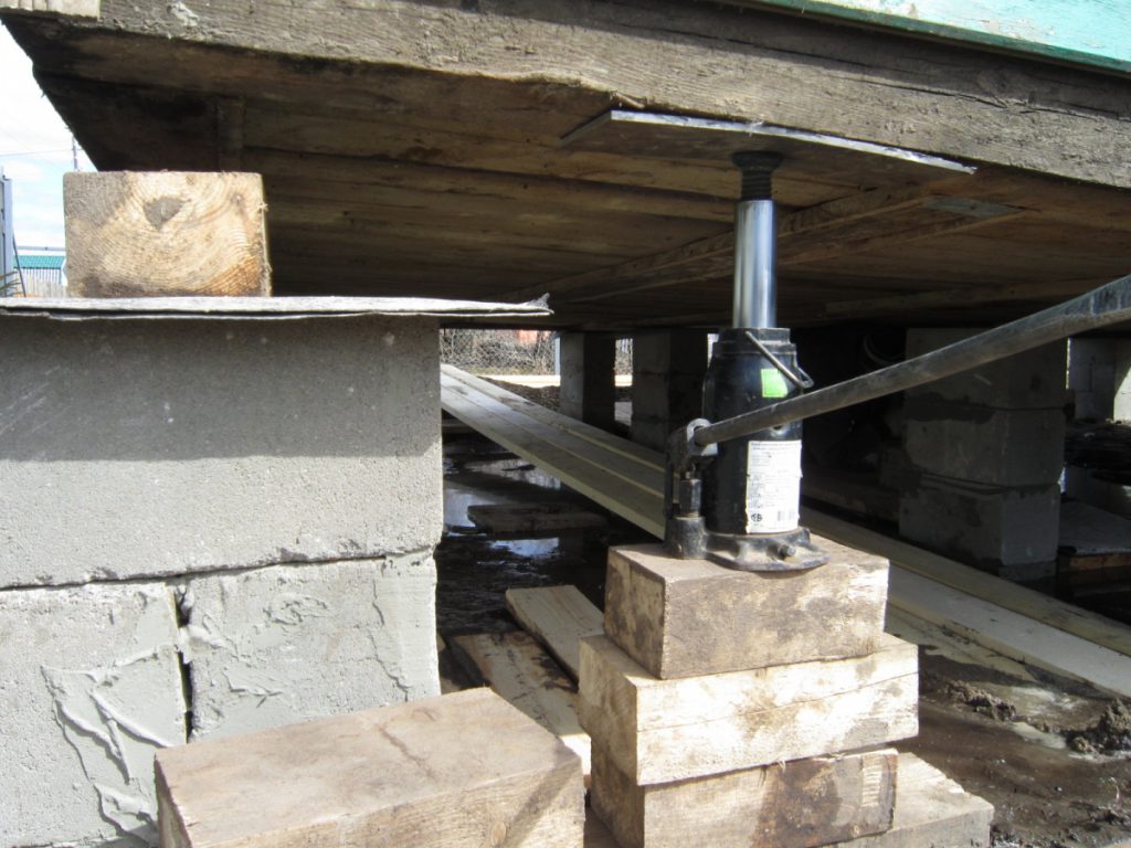 В случае необходимости выполняем ремонт фундамента, приподняв его.