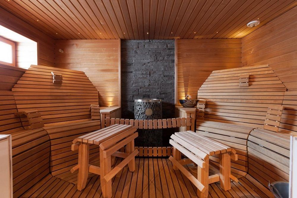 Мебель в парилке преимущественно округлых форм, изготовлена из дерева осины, ольхи или липы.
