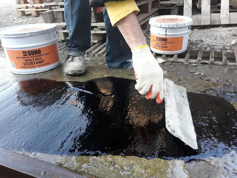 Битумно-каучуковый мастичный состав можно применять как для мелкого, так и для среднего ремонта кровельных покрытий, гидроизоляции бетонных емкостей, подвалов, санузлов и балконов.