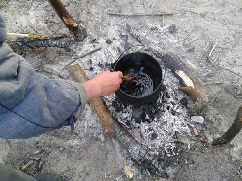 Обычно битум разогревают на костреИсточник a.d-cd.net
