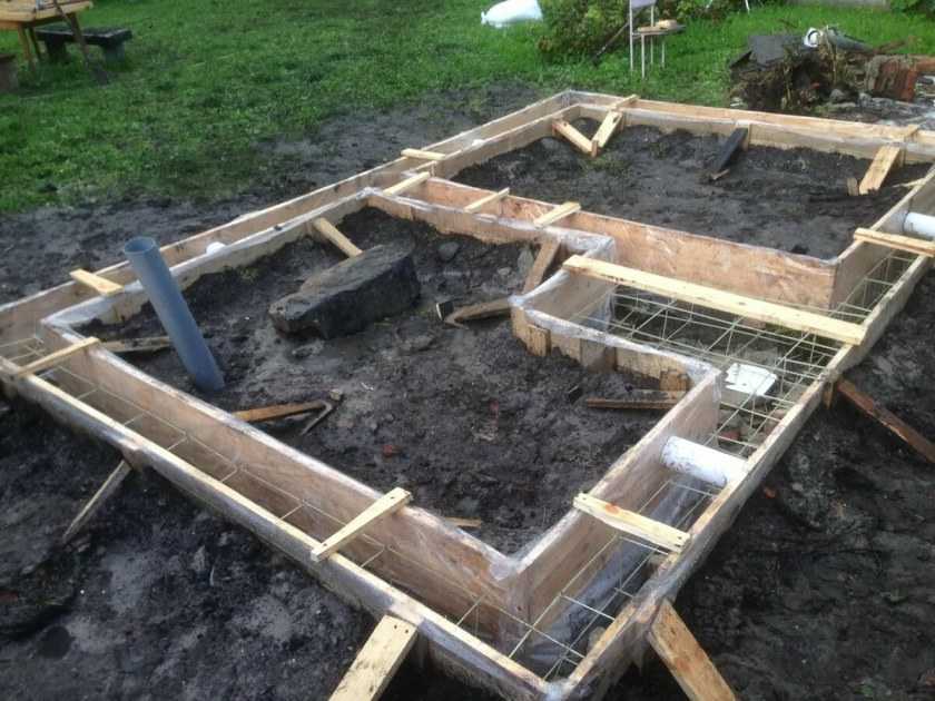 - Сколотить щиты в единую опалубку, установить их по границам траншей. Распереть брусками.