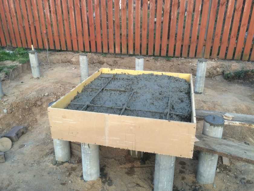 Важно сделать достаточное количество подпорок, чтобы под весом бетона опалубка не начала расползаться. Также в верхней части отдельные листы можно закрепить между собой поперечинами.