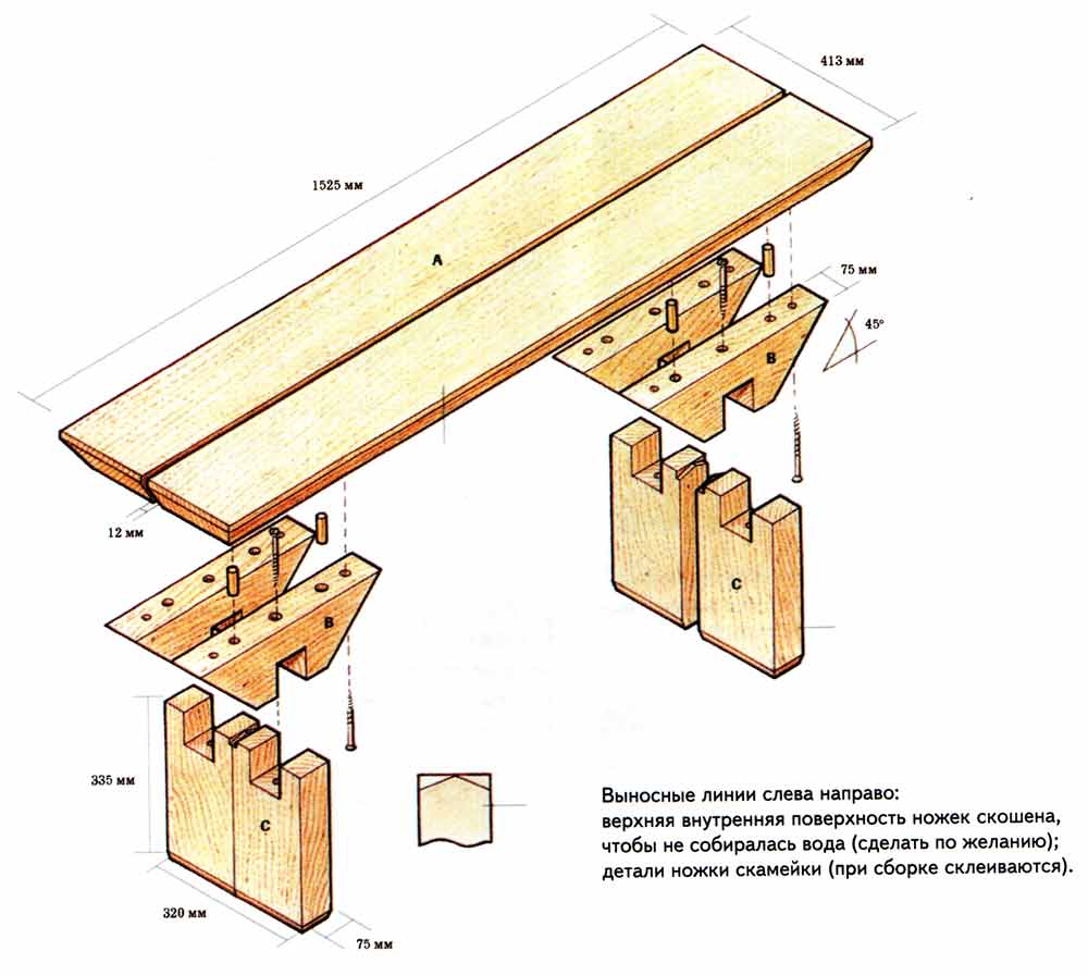 - Между стеной и установленной скамейкой обязательно оставляется зазор до 10 см.