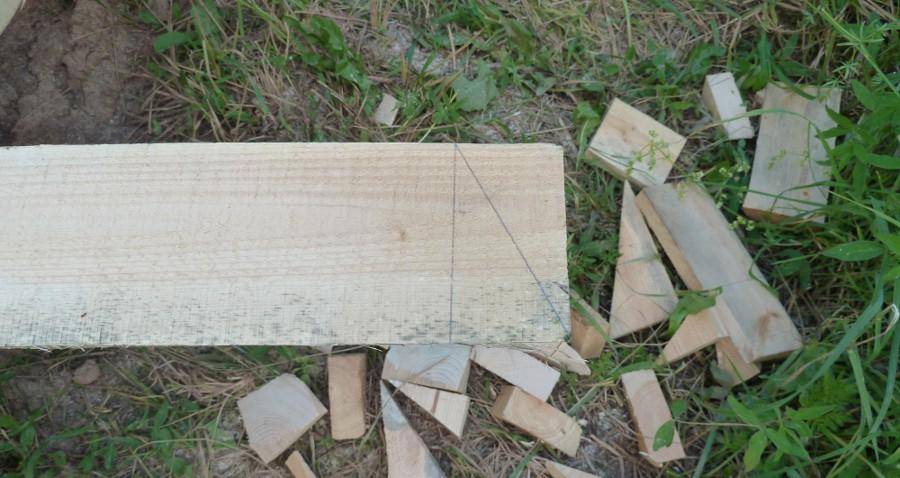 - Распилить брус таким образом, чтобы получилось 4 части п о40 см каждая, для будущих ножек лавки;