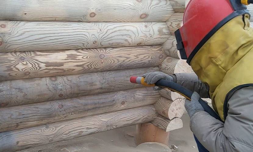 Суть этой процедуры состоит в том, что древесина обрабатывается с помощью большого количества песчинок, подаваемых под давлением. В итоге получается идеально чистая поверхность древесины, на которой даже в самых мелких неровностях не остаются плесень и грибок. Достичь подобного результата с помощью ручных методов обработки просто нереально. Для выполнения работ нужен опыт и подходящий инструмент, так как в противном случае можно безнадёжно испортить поверхность бруса.