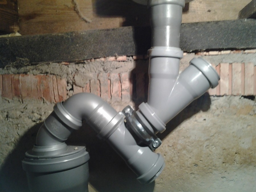 Для сливной линии используют, как правило, канализационную трубу ПВХ стандартным диаметром 100 мм. Магистраль собирается из двухметровых или метровых отрезков, которые стыкуются между собой посредством существующих у них раструбов на концах.