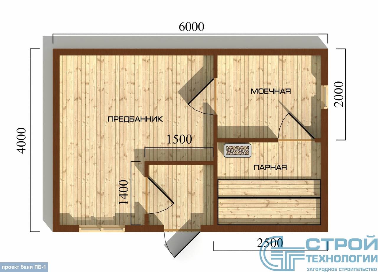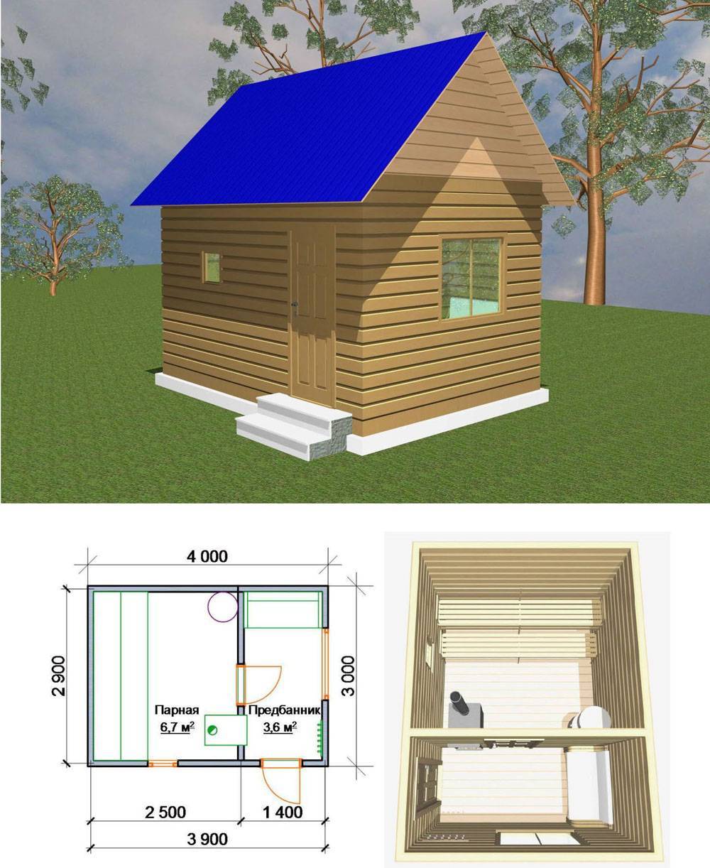 Проект бани, построенной из пеноблоков