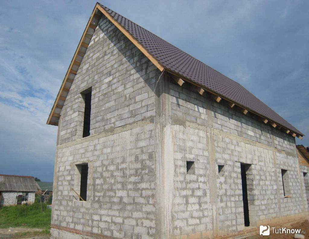 Баня из газоблока своими руками построенная может иметь и такую крышу