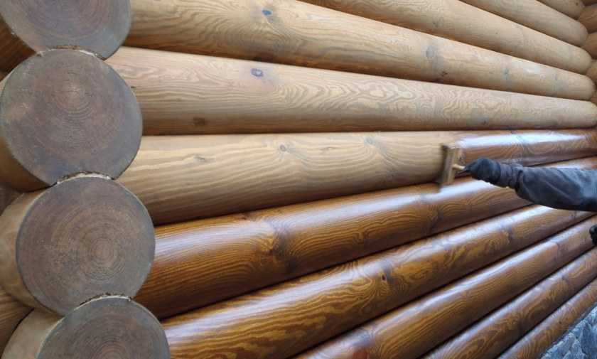 Дерево, используемое для строительства бани нужно обрабатывать антисептиком. Эту процедуру нужно сделать либо задолго до строительства, чтобы материал просох, либо после сборки всей конструкции