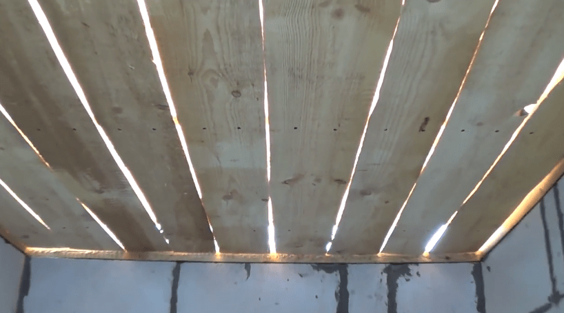 - После монтажа изоляции можно обшивать стены вагонкой. Она закрепляется саморезами на концах и финишными гвоздями на остальных участках. Вагонку можно расположить горизонтально. Это зрительно удлинит помещение и уменьшит отходы при ее набивке.