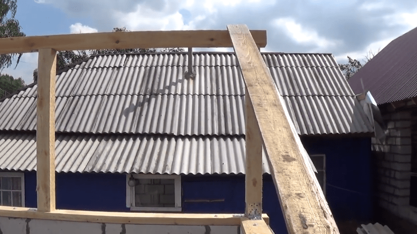 Шаг 6. Укрепляем каркас укосинами. По бокам устанавливаем столбики из бруса и по одной дополнительной укосине, чтобы в дальнейшем прикрепить обшивку.