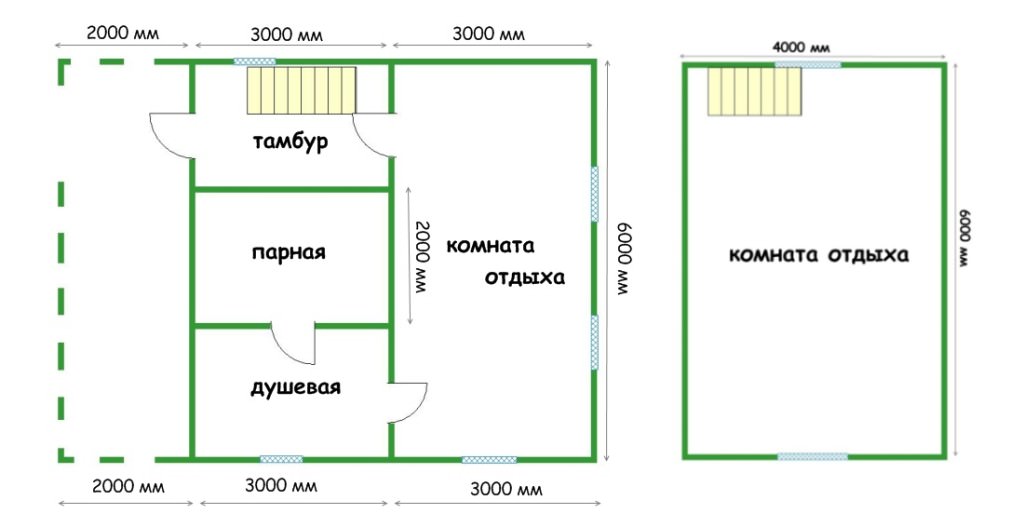 | Цена строительства бани 6х6 м, руб. | 409000 (63 м²) | 463000 (64м²) |