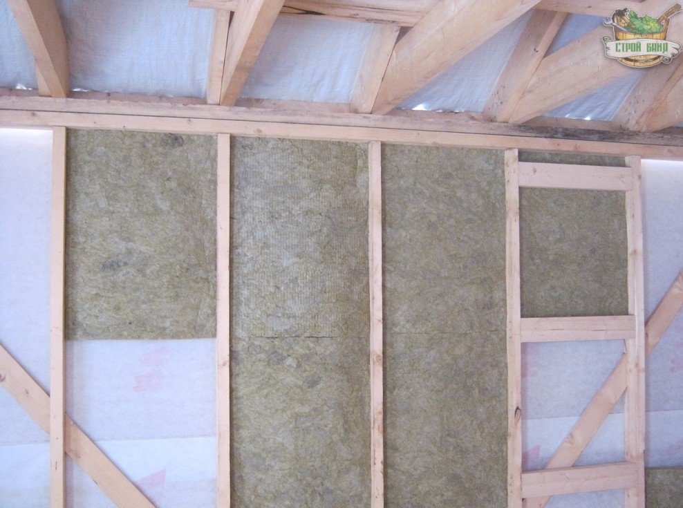 Сооружение потолка и крыши для каркасно-щитовой бани