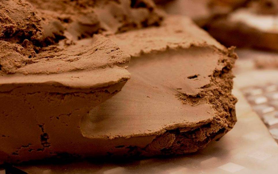 Состав смеси зависит от степени жирности используемой глины, которая, в свою очередь, зависит от количества песка. Если песчаной составляющей в глине меньше 15%, она получится слишком жирной. В норме сырье должно содержать 15-20% песка.