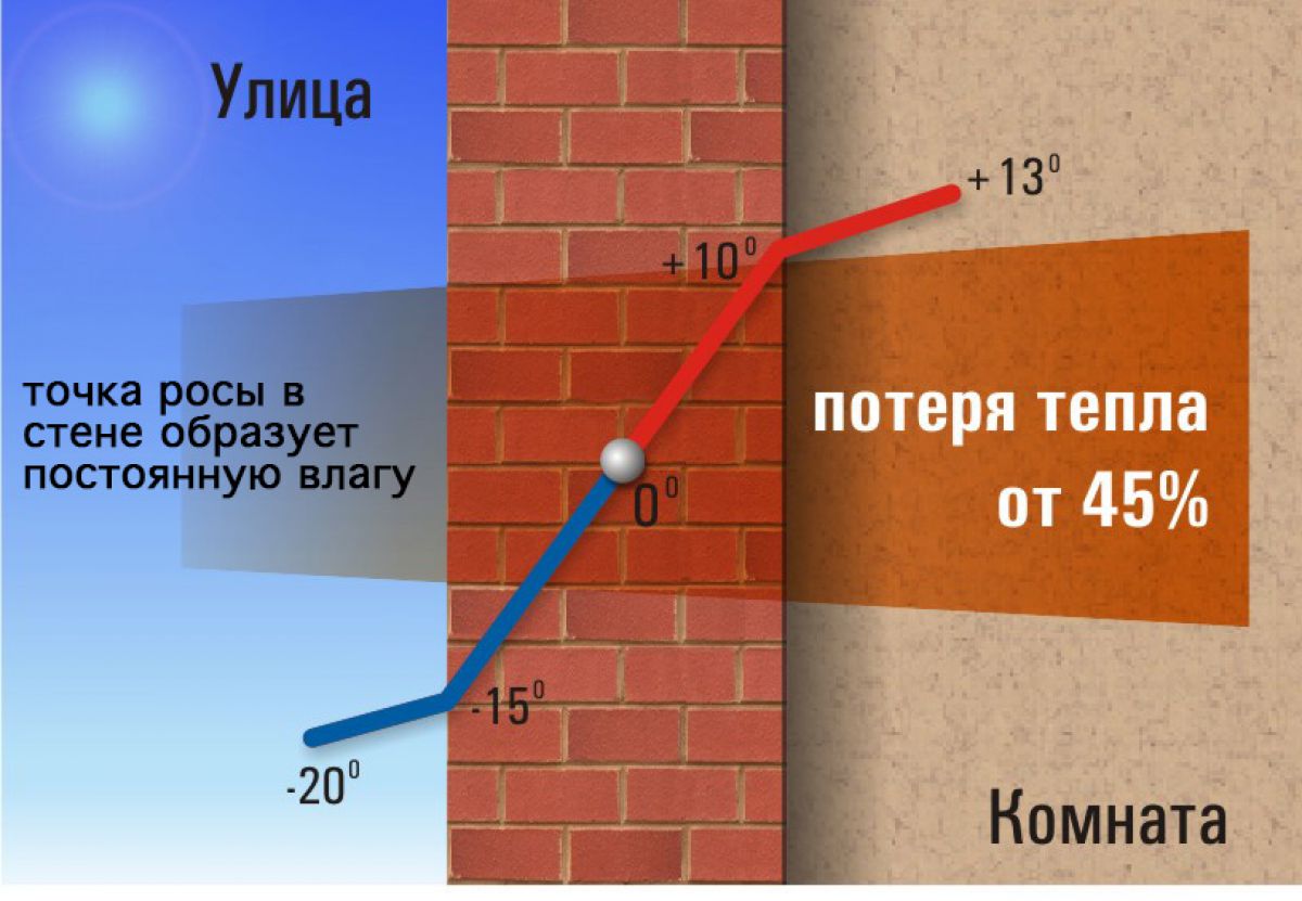 В зависимости от этого показателя, стена остается сухой круглый год либо намокает при понижении температуры на улице.