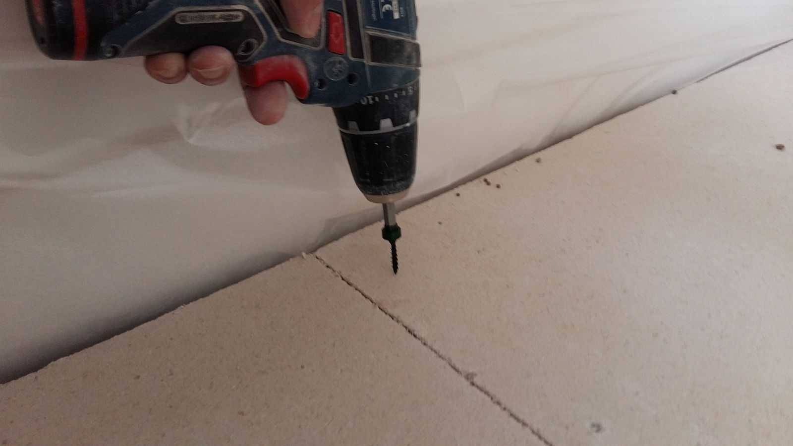 Для полов обычно используют ГВЛ в два слоя. Кладут их с разбежкой швов. Слои крепят на саморезы. Толщина ГВЛ для пола зависит от планируемой нагрузки. Обычно используют плиты не менее 12,5 мм толщины. Если геометрия материала не идеальна и есть перепады по высоте, чтобы не шлифовать, можно использовать все тот же клей на основе гипса.