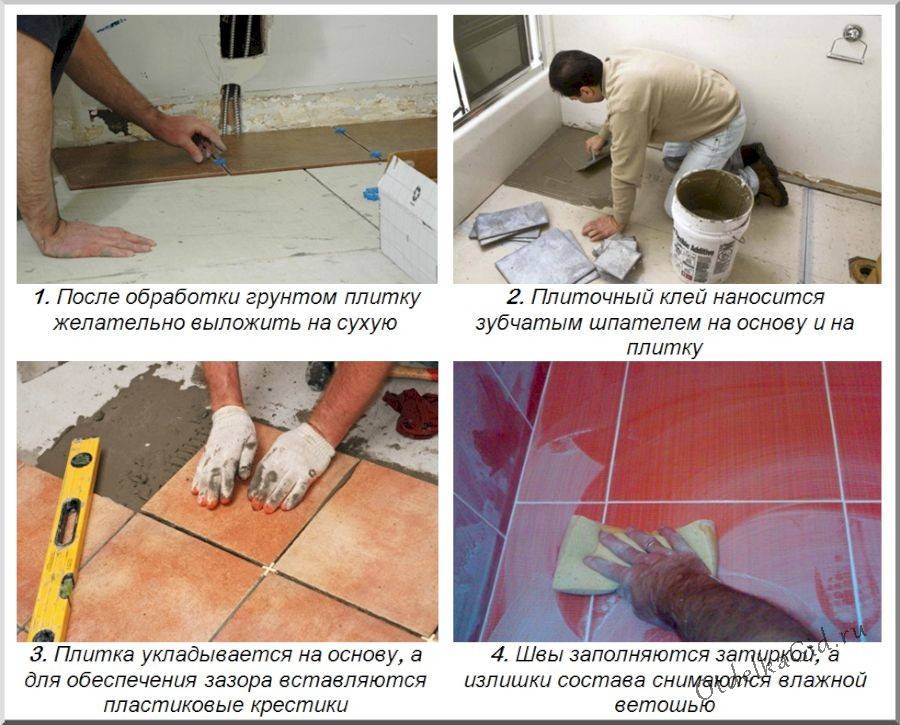 При укладке кафельной плитки придерживаются следующего алгоритма работы: