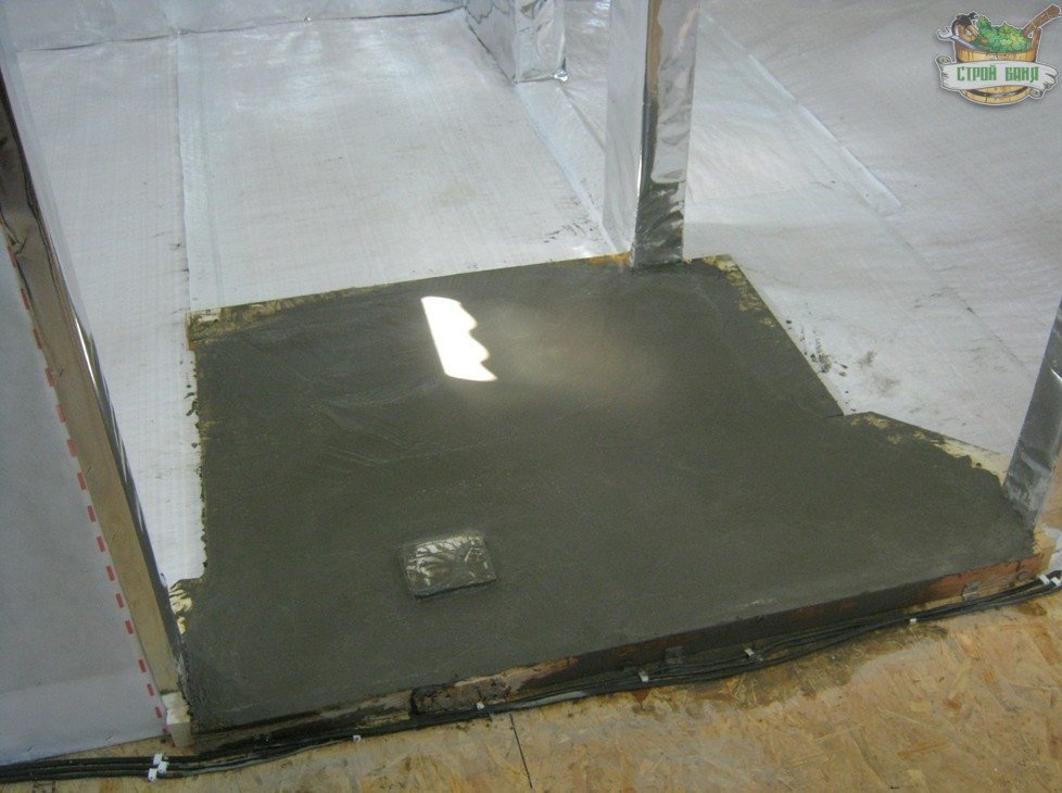 Не протекающее устройство полов в бане в моечном отделении предполагает наличие чернового основания и укладку слоя теплоизоляции