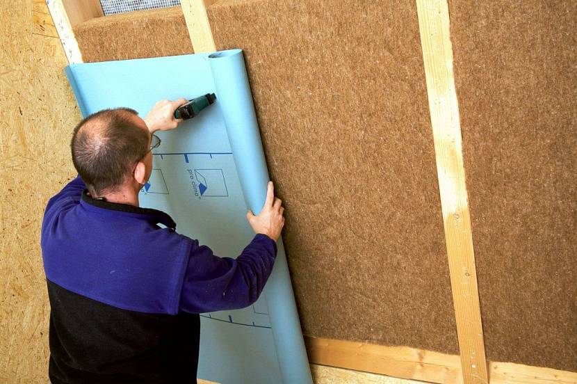 Как и в случае с пароизоляцией, пленка фиксируется к несущей конструкции при помощи строительного степлера. Для естественной циркуляции воздуха между теплоизоляционным и гидроизоляционным слоем обеспечивают вентиляционный зазор.