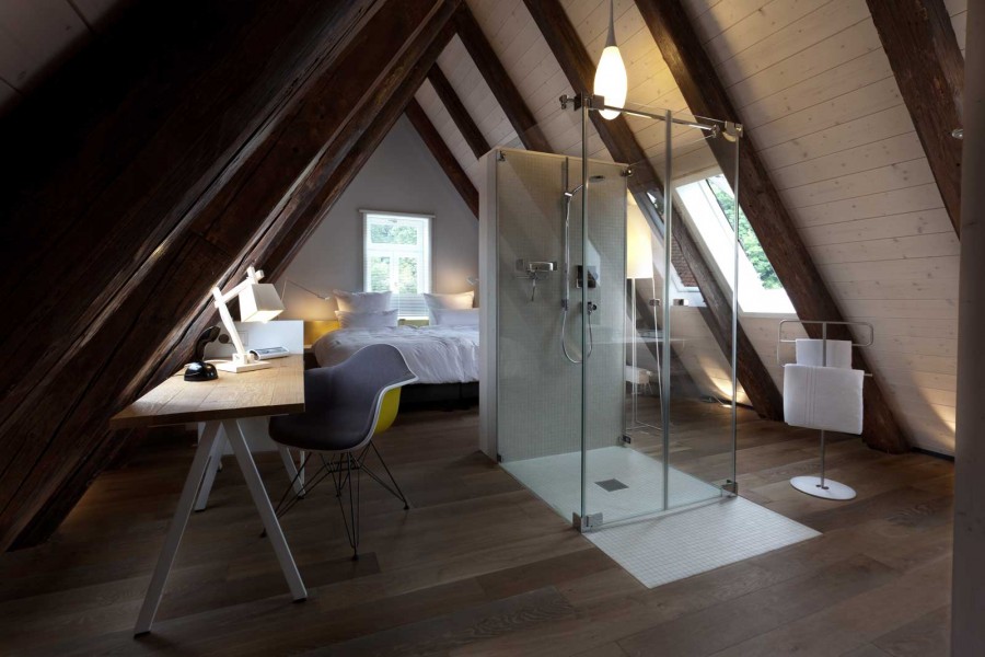 Для этого, необходимо побеспокоиться о качественной гидро и пароизоляции перекрытия между уровнями. Вентиляция тоже станет важнейшим моментом. От того, насколько хорошо будет проветриваться вся постройка, зависит комфорт нахождения внутри и срок службы строения. Причем, предусмотреть вентиляцию нужно не только в мансарде, но и в самом банном комплексе.