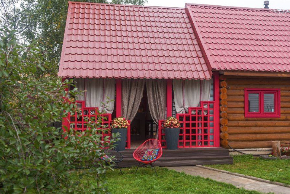 Кровельный материал выбирается тот же, что лежит на крыше бани. Так, конструкция впишется в общий дизайн.