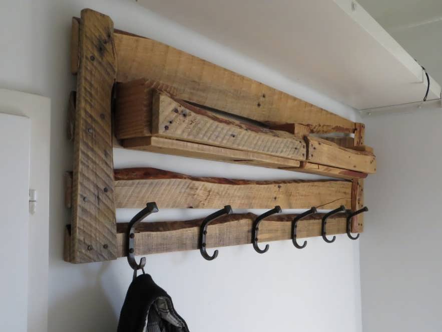 Самый практичный для бани и легкий для новичка материал – это дерево. Если у вешалки будет полка, то учтите, что под нее понадобиться опора. Крючки либо купите в магазине, любо подойдут сучки дерева. Выбирайте наиболее прочные, с них нужно снять кору и тщательно просушить.