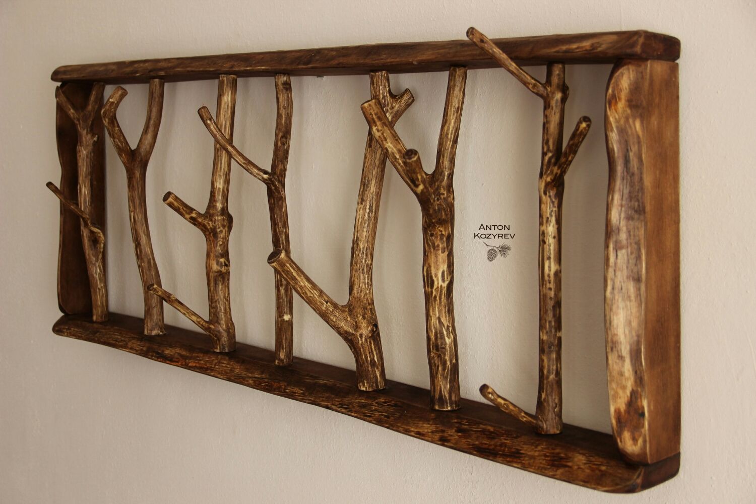 Вешалка из дерева сделанная своими руками будет выглядеть привлекательно и самобытно, что непременно заметят гости.