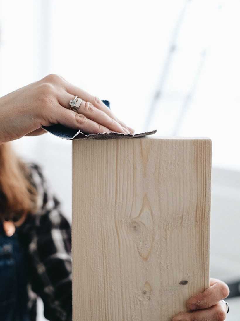 Каждую рейку тщательно обрабатываем наждачной бумагой, чтобы избежать заноз и зацепок. При желании можно покрыть дерево морилкой или прозрачным лаком, чтобы ярче проявить фактуру материала