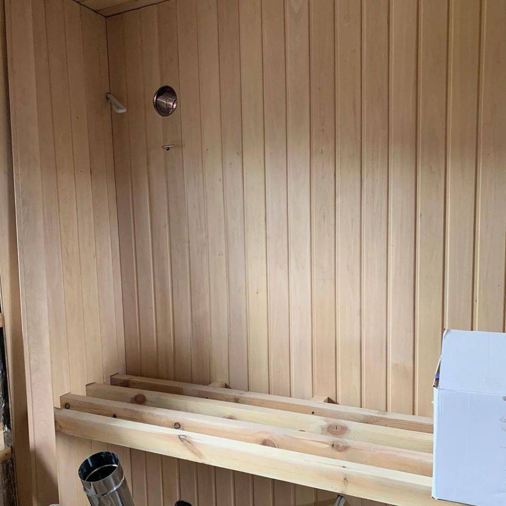 - Дополнительная перегородка между парилкой и предбанником, совмещенным с комнатой отдыха.