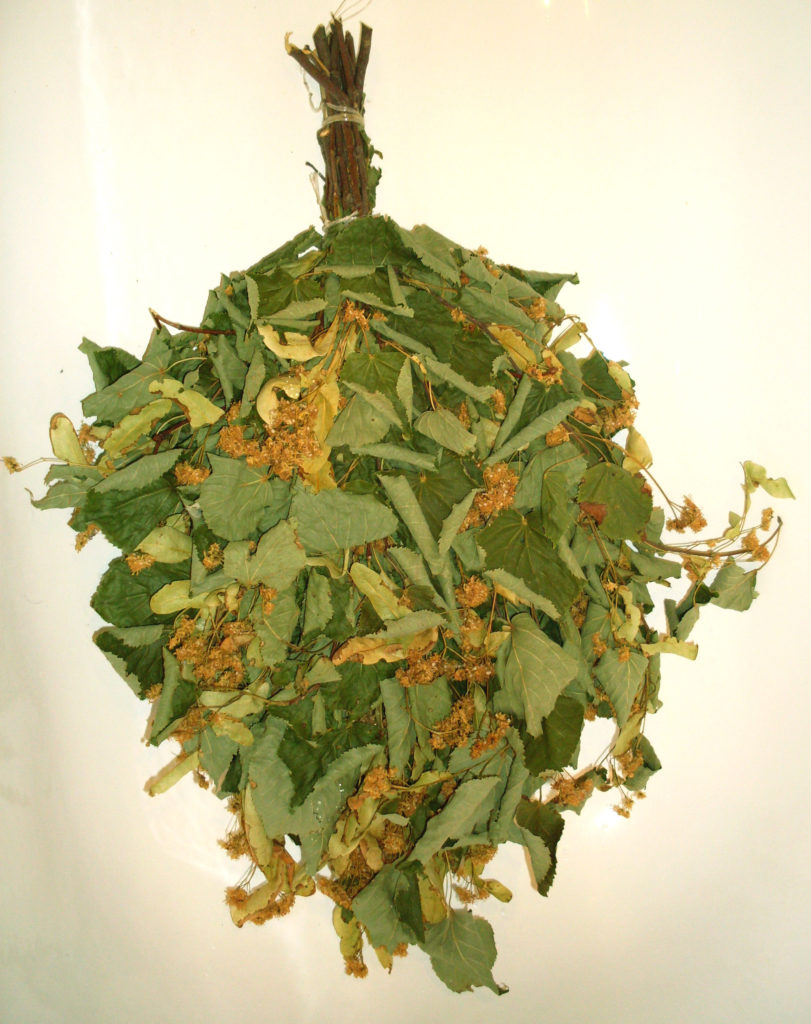 Веник из липы, лучше заготавливать с начала июля до августа. Вместе с ветками липы, в веник добавляют иву, рябину, и ольху. Лучше всего, срезать веточки, с деревьев, которые находятся подальше от пром. зоны. Очень хорошо веник из липы, использовать тем, у кого часто болит голова, или проблемы с потоотделением.