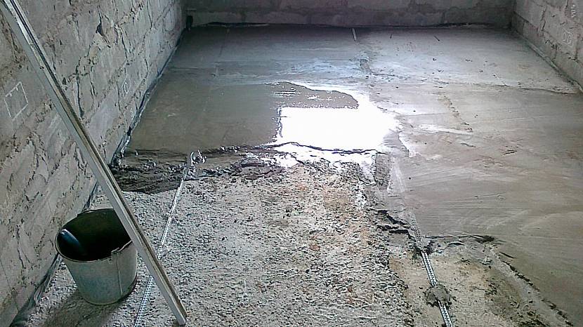 Укладка цементной армированной стяжки — Заливка пола в бане